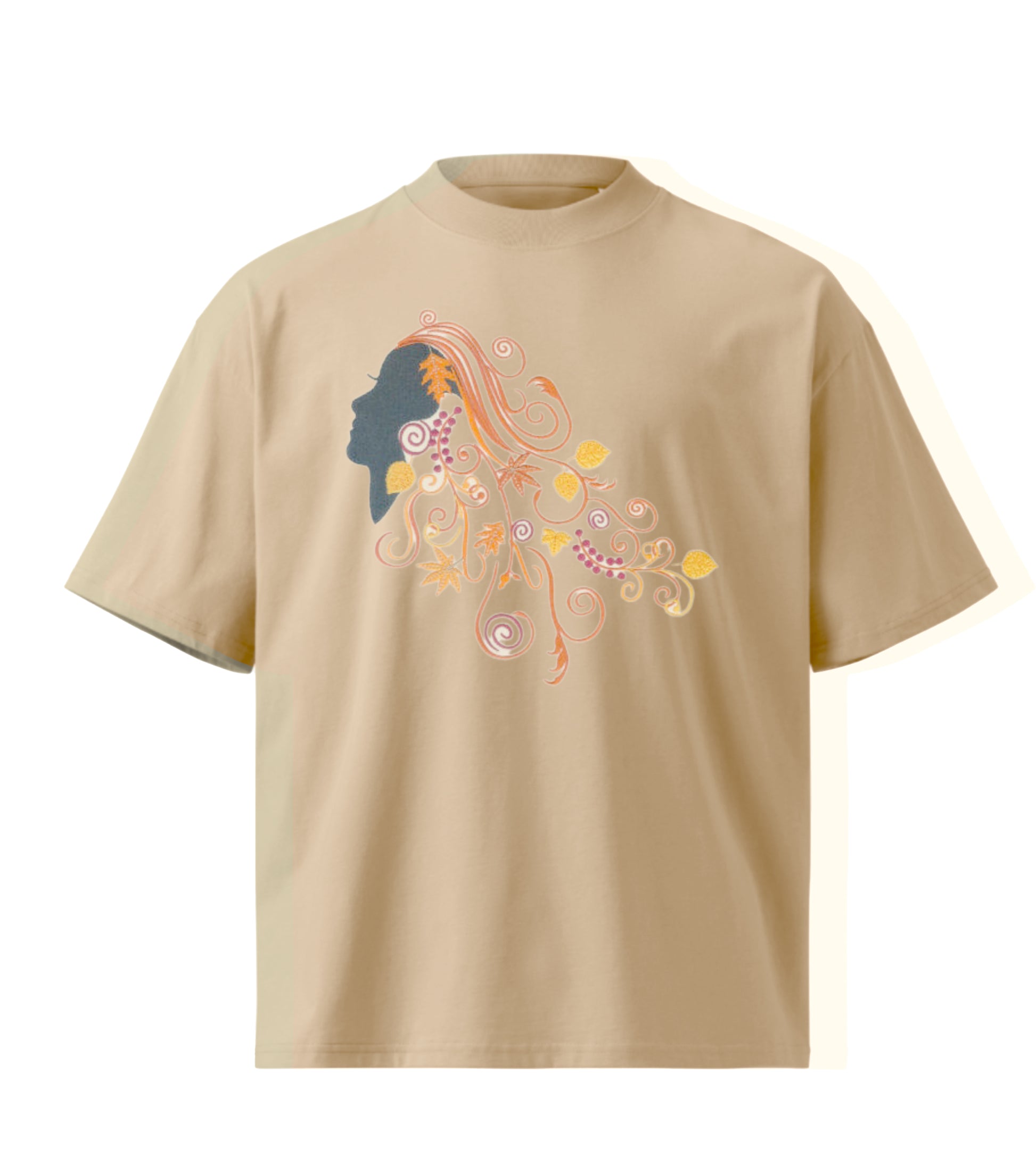 Autumn face embroidery design Premium Oversized T-Shirt in 210 GSM Cotton