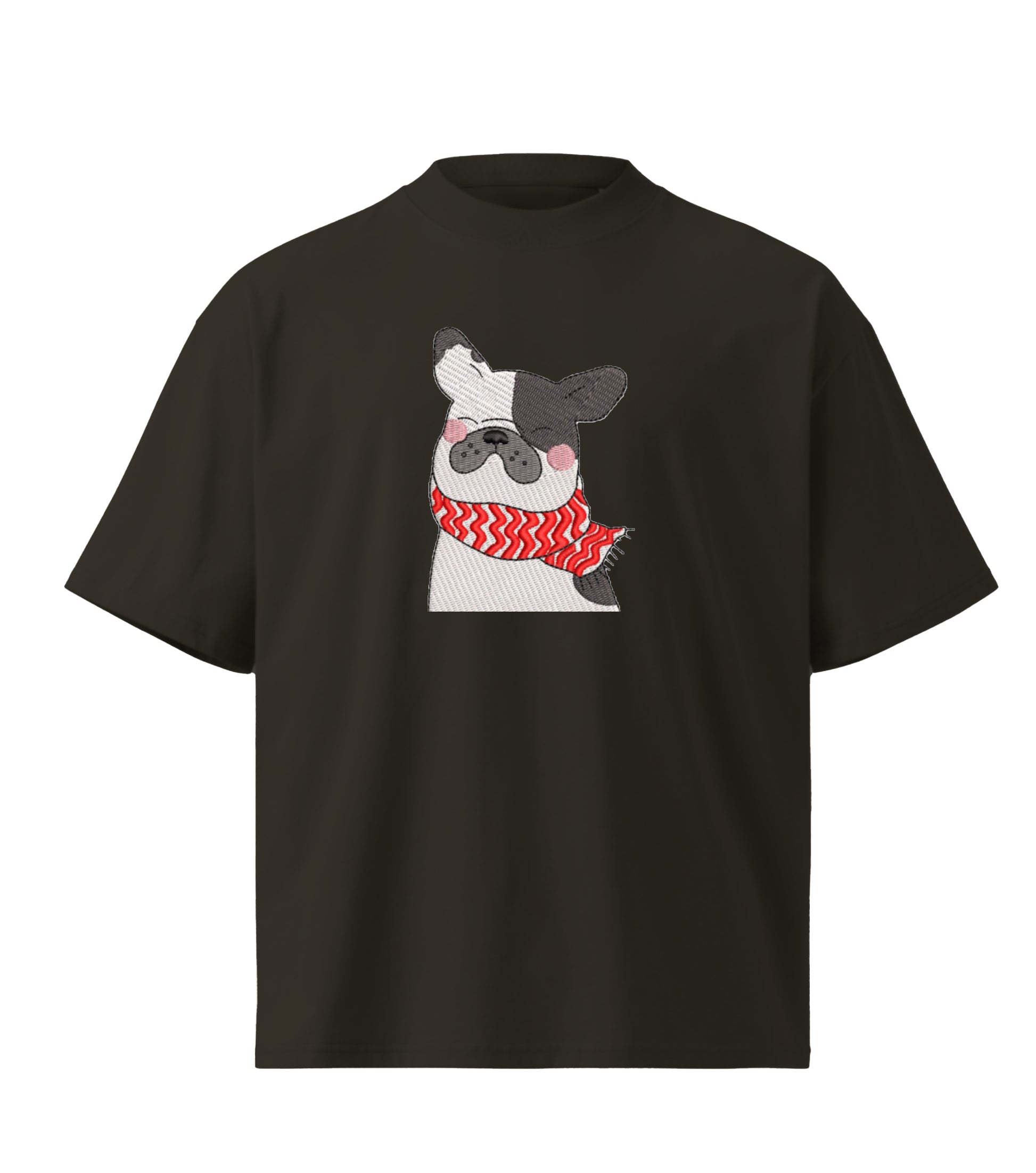 Bulldog Snow embroidery design Premium Oversized T-Shirt