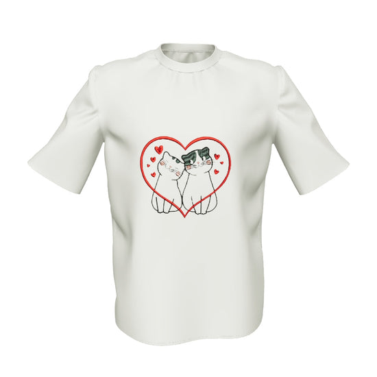 Kittens in Love  embroidery design Premium Oversized T-Shirt